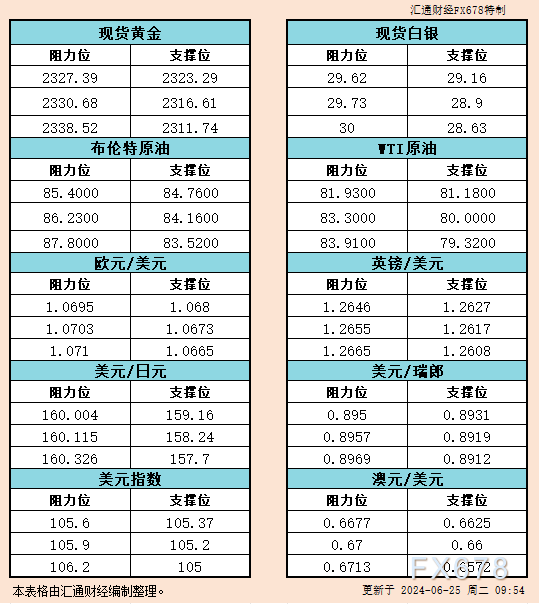 汇通财经APP讯——本文提供黄金、原油、美元指数、欧元、英镑、日元、瑞郎、澳元支撑阻力位。